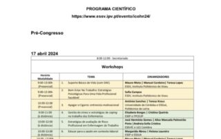 A Escola Superior de Saúde de Viseu (ESSV) do Instituto Politécnico de Viseu irá acolher o “6th International Congress of Occupational Health Nursing (ICOHN24)”, a decorrer no Auditório Carlos Pereira da ESSV nos dias 17, 18 e 19 de abril de 2024. Este Congresso Internacional é organizado em parceria com a Escola Superior de Enfermagem