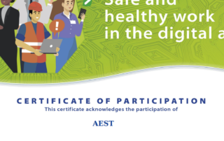 Enquanto parceira, a AEST apoiou ativamente a campanha "Locais de Trabalho Saudáveis na era Digital". Para mais informações sobre a campanha, visite o website (http://www.healthy-workplaces.eu) ou siga no Facebook , Twitter e LinkedIn . Poderá também manter-se a par das últimas novidades, subscrevendo a newsletter da campanha.