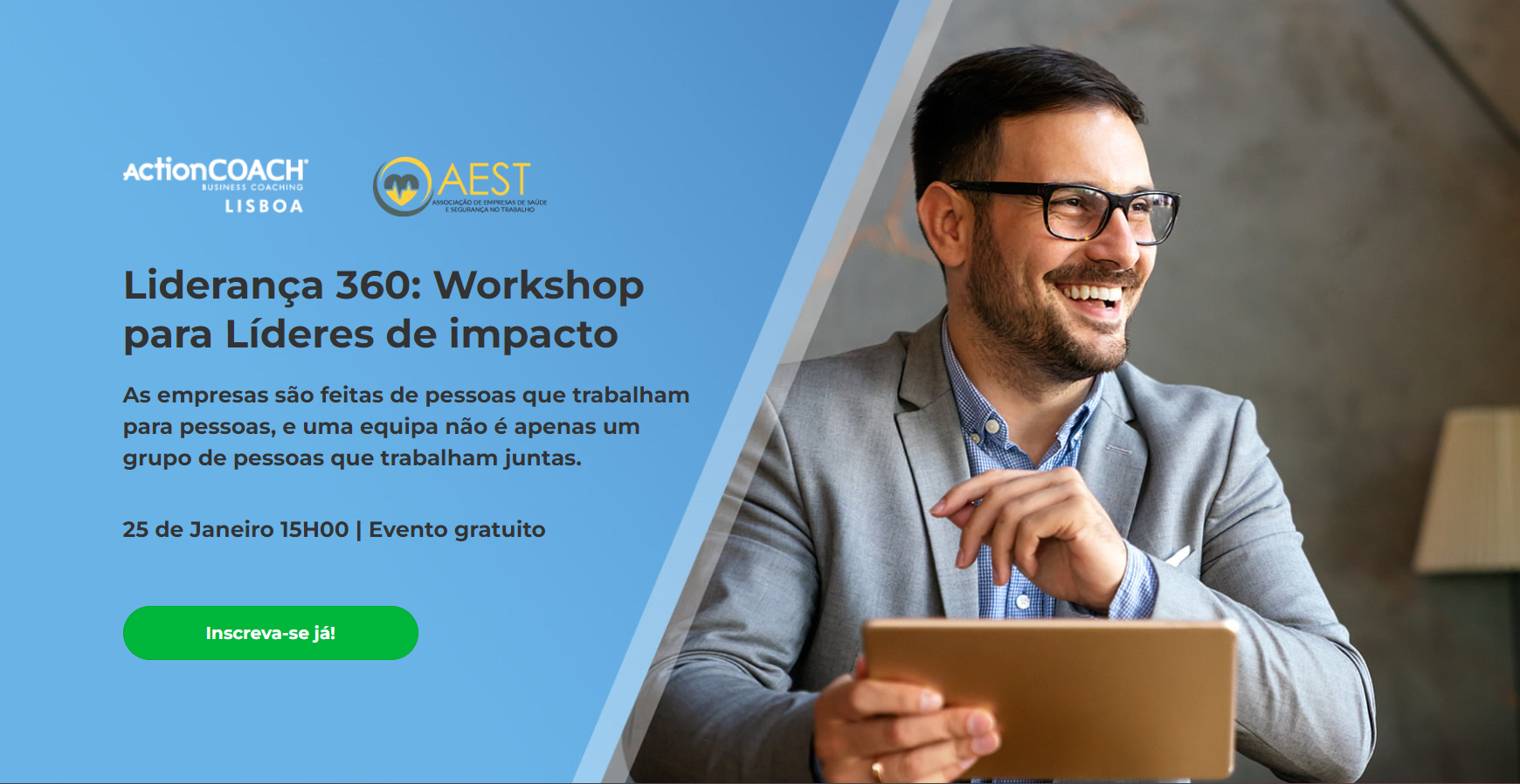AEST | ActionCOACH Lisboa - Business Coaching As empresas são feitas de pessoas que trabalham para pessoas, e uma equipa não é apenas um grupo de pessoas que trabalham juntas. 25 de Janeiro 15H00 | Evento gratuito INSCREVA-SE JÁ E RECEBA UMA SESSÃO DE BUSINESS COACHING TOTALMENTE GRATUITA! https://www.actioncoachlisboa.pt/lp-lideranca360-workshop/